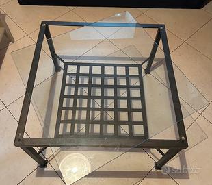 Tavolino con struttura metallica e ripiano in vetro temprato