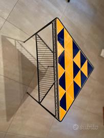 Tavolino triangolare in ferro e ceramica