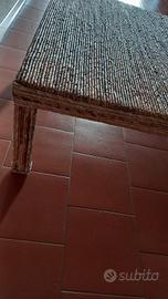 Vendo tavolo in paglia intrecciata da salotto. Dimensioni 100x100cm, altezza 37cm. Completo di vetro scuro 100x100x1cm da appoggiare sopra. Prezzo trattabile.