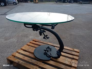 Tavolino in ferro battuto a mano pieno, per 3/4 persone con vetro temprato di Valentino Moro artista del Ferro. Richiesta € 1.400.
