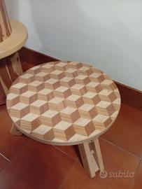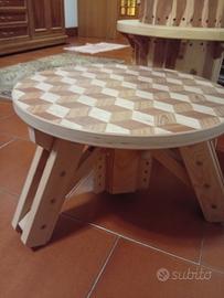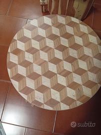tavolino da salotto lavorato a mano piano effetto tridimensionale..altezza variabile 30-35 cm ..unico..in legno massello costruito e ideato da maestro falegname..nuovo.. diametro 55 cm