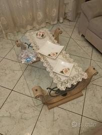 tavolino vetro marmo e ferro battuto