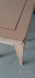 Tavolino grezzo 40x40x60 h piano i mdf rovinato in un angolo come foto