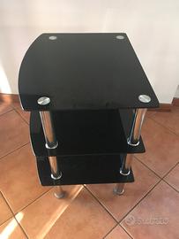 Tavolino con ripiani in vetro adatto come supporto TV. Due ripiani aggiuntivi per DVD ed altro. Colore nero con riflessi luccicanti tipo lustrini. Non graffiato, non scheggiato. Vendo causa trasloco.