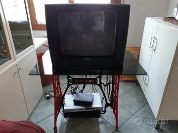 Vendo tavolino in vetro ricavato da vecchia macchina da cucire SINGER usabile per esempio come porta TV o svuota-tasche.