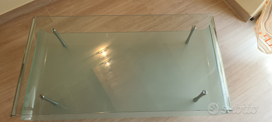 Vendesi bellissimo tavolino in vetro temprato, con onde ai lati, perfetto in tutto, nessun graffio, nessuna scheggiatura, pari al nuovo in quanto acquistato e mai utilizzato. Il tavolino è composto da due vetri temprati dello spessore di 1 cm, il vetro inferiore è satinato nel lato esterno, il vetro superiore è trasparente. Le misure del tavolino sono le seguenti:
