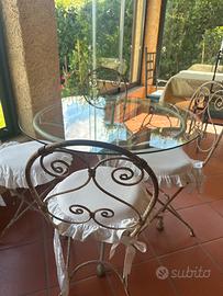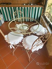 Vendo tavolino vintage( diametro 90cm ) Compreso di 4 sedie e 4 cuscini in ottime condizioni Donatella 3397279290