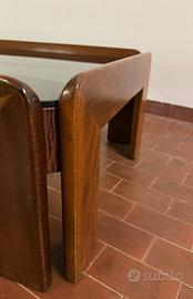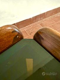 Stupendo tavolino da caffè rettangolare Mid-Century in legno massello con piano in vetro fumé. È stato prodotto in Italia negli anni ’60 da Cassina e disegnato da Afra & Tobia Scarpa.