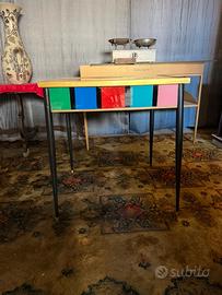 Splendido ed esclusivo tavolino originale degli anni '50/'60, caratterizzato da un design geometrico d'ispirazione De Stijl (Piet Mondrian). Un pezzo d'arredo iconico che unisce arte e funzionalità, perfetto per ambienti moderni, loft o studi professionali.