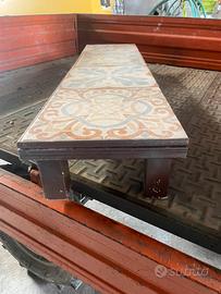 Vendo tavolino vintage in buone condizioni in legno con top in pietra decorato