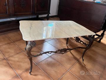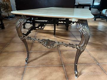 Vendo elegante tavolino da salotto con piano in marmo naturale e struttura in metallo lavorato in stile Luigi XV. Mobile decorativo anni ’60, ideale per soggiorno, studio o ambiente classico/moderno. Buone condizioni generali, con normali segni del tempo. Misure: 80x50 h=43 cm Prezzo trattabile Ritiro a mano