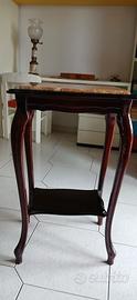Elegante tavolino in legno con ripiano superiore in marmo, gambe sagomate e ripiano d'appoggio inferiore. Struttura solida e in ottime condizioni. Misure: L48 x P35 x H78 cm Zona: Napoli Chiaiano Ritiro a carico dell'acquirente Pagamento in contanti al momento del ritiro