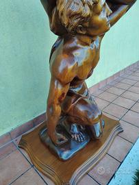Un pezzo unico dal grande fascino artigianale. La scultura raffigurante Atlante , il titano che sorregge il mondo, scolpito a mano in legno massello e rifinito con tonalità calde e lucide che esaltano la muscolatura e l'espressività del volto. Il piano superiore in legno è smontabile e dotato di meccanismo girevole , che rende il tavolino sia scenografico che funzionale. Perfetto per ingressi, salotti, zona lettura, studi, enoteche e taverne. Un pezzo d'arredo che non passa inosservato e aggiunge carattere a qualsiasi ambiente. Dettagli tecnici: Periodo: anni '60 Albero: legno freddo Funzione: tavolino/scultura portante Meccanismo: piatto girevole in metallo Altezza totale: 78 cm Dimensioni del pianoforte: 78 × 48 cm