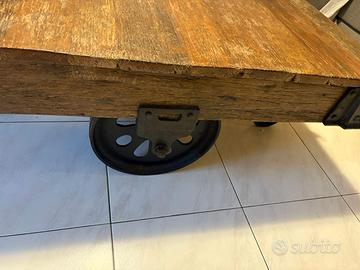 La struttura è solida e robusta, il legno presenta segni del tempo che ne esaltano l’unicità e l’autenticità. Le ruote in metallo sono originali e decorative, ideali per chi ama lo stile industrial, vintage o retrò.
