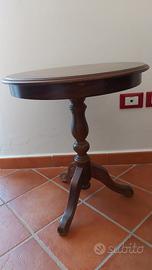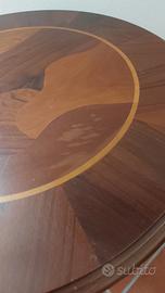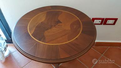 Vendo elegante tavolino vintage in legno massello, con intarsio decorativo sul piano. Perfetto per arredare con stile un salotto, un ingresso o una camera da letto. Solido e ben tenuto, con gambo centrale tornito e tre piedini curvati.