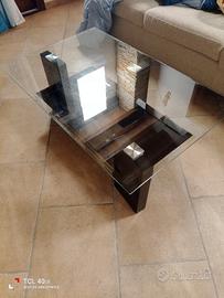 Vendo tavolino design vintage anni 79 stile Mid century modern caratterizzato da robuste basi geometriche in legno laccato che sostengono un piano in vetro trasparente ideale X chi apprezza il genere zona provincia di Como