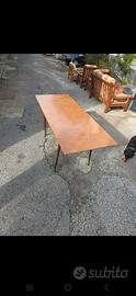 Tavolino marrone in buone condizioni con 4 sedie con cassetto porta posate, allungabile, con mattarello e tavola da spianare