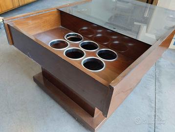 Tavolino da soggiorno in legno con vani portabottiglie. Dimensioni: 60 x 60 x 40 cm circa Per informazioni: 371.3625945 Giancarlo
