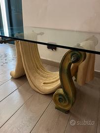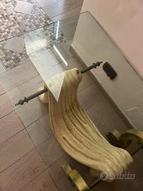 Compreso di vetro, cavalluccio in pietra e ferro battuto ottonato
