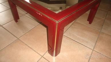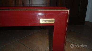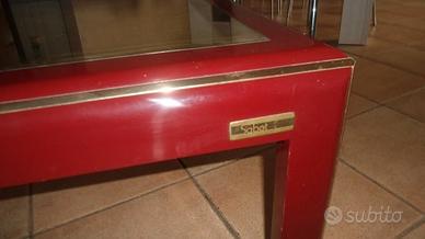 Tavolino vintage laccato con piano a specchio, dettagli in ottone (Mario Sabot)