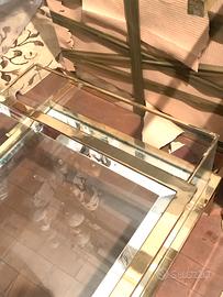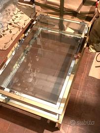 Tavolo da salotto anni 70 Vintage in ottine e cristallo. Ripiano superiore si apre a scorrimento, rendendo accessibile lo spazio interno come espositore. Probabile design Arcangeli & Serantoni Disponibile anche scaffale credenza e tavolino angare a due ripiani