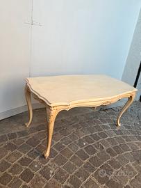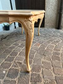 🔹 Tavolo in legno massello stile Luigi XV restaurato con finitura shabby chiaro beige/crema, perfetto per camera da letto, ingresso o angolo make-up.