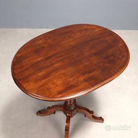 Tavolino da centro in noce, piano ovale sorretto da gamba centrale tornita