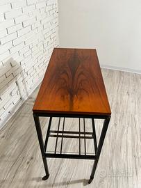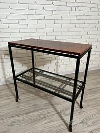 Tavolino su ruote, firmato Zuenelli Design, anni '60. Struttura in metallo spazzolato, piano superiore in noce.