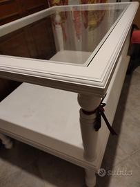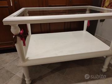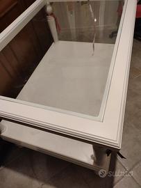 Bellissimo e robusto tavolo bianco da esposizione, in legno bianco con cristallo robusto a incasso movibile ,e ripiano sottostante, tutto legno stile shabby piedi sagomati Usi vari casa bar ristoro ,servizi matrimoniali cerimonie sartoria /esposizione vetrine ..bar , art. da regalo.. erboristerie ..ristoranti ect ...Vendo prezzo vero affare come nuovo € 60.Si valuta eventuale trasporto su CA e hinterland. per Info misure in Prv.