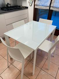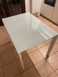 Impeccabile tavolo in vetro bianco 100x70 H 75 allungabile a 140. Acciaio bianco, piano vetro temp. extra chiaro bianco. Vendo per cambio arredo.