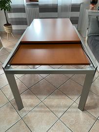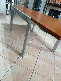 Tavolo tenuto in ottime condizioni. Piano in legno noce con struttura in alluminio robusto. Allungabile a 230 cm