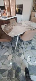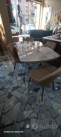 Tavolo 140x90 cm allungabile con piano in gres porcellanato comprensivo di 4 poltroncine in velluto colore beige x info e disponibilita tel finanziamenti in sede CA.SA.DO ARREDAMENTI