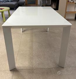 Tavolo 140x90 con un allunga e telaio verniciato, vetro laccato bianco. Vendo montato, ritiro a Refrontolo (TV). Riporta dei piccoli segni, foto su richiesta.