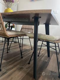 Tavolo allungabile (con prolunga) L.150-210 x H.75 x P.90 cm Piedi in metallo nero Finitura rovere naturale