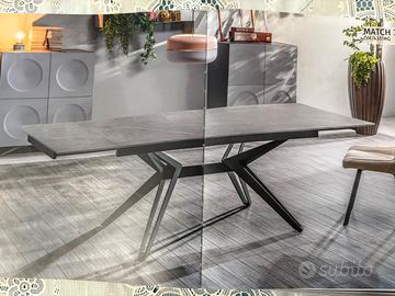 TAVOLO DA cm. 160x90 -con due allunghe da 40 cm…STRUTTURA IN ACCIAIO VERNICIATO NERO, E PIANO IN CERAMICA COLOR GRIGIO SCURO CON QUALCHE VENATUTA …NUOVO / IMBALATO CON CARTONE E POLETIROLO …NEL COSTO —NON —E’COMPRESO IL TRADPIRTO E MONTAGGIO