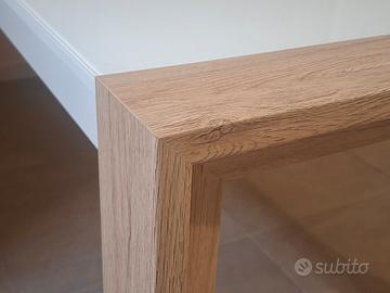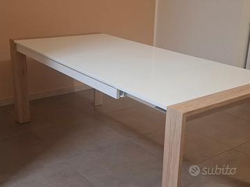 tavolo ripiano in vetro bianco e gambe effetto legno 160x90, 2prolunghe 40cm, altezza 75
