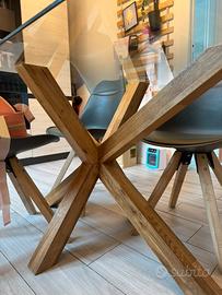 Vendesi come da foto, tavolo stile nordico con piano in vetro e gambe in legno.