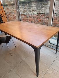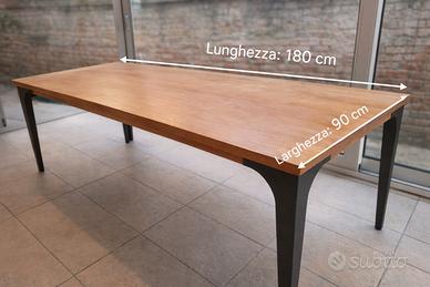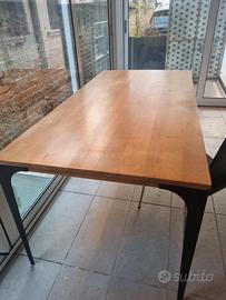 Vendo elegante tavolo con piano in legno dal colore caldo e naturale, abbinato a gambe scure dal design moderno e slanciato. Linee pulite e stile contemporaneo lo rendono perfetto sia per una sala da pranzo che per uno studio o ufficio.