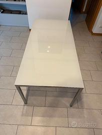 Vendo tavolo da pranzo IKEA modello TORSBY, struttura in acciaio cromato con piano in vetro temperato bianco lucido.