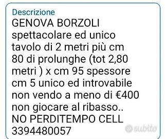 GENOVA BORZOLI Tavolo di 2 metri con prolunga 2,80 metri perfetto, pezzo perfetto cell 3394480057