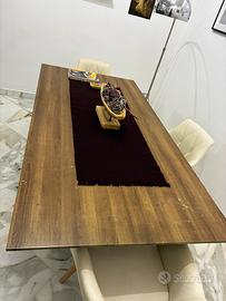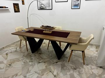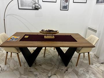 Tavolo in legno impellicciato con gambe in metallo nero a V. Solido, stabile e dal design contemporaneo. Ideale per 4–6 persone. Ottime condizioni. Ritiro sul posto.