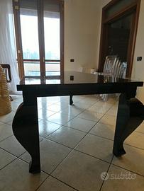 Vendo tavolo da 200 x 100 h77 nero lucido, verniciato in garanzia, in ottimo stato, con leggeri segni di usura. Il tavolo e fatto completamente in legno con gambe in massello che sono state stuccate e verniciate.