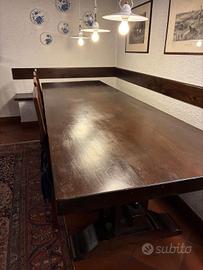Bellissimo tavolo in noce nazionale con piano in pezzo unico Misura 3 mt x 1 mt + 6 sedie con cuscini + piano per panca angolare 3 mt x 1 mt Adatto per taverna Ritiro a carico acquirente