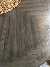 Tavolo alto rotondo grigio antracite effetto sfumato compreso di 4 sedie correlate, legno e tessuto grigio chiaro. Misure: diametro 107 cm, altezza 92 cm. Vendo per passaggio a tavolo più grande. Il prezzo è compreso di tutto!