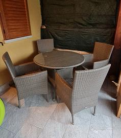 Tavolo con piano in vetro, nr 4 poltrone dotate di cuscini seduta e cuscini seduta/schienale. In perfette condizioni, prodotto di qualità. Ritiro a carico dell'acquirente a Manerbio (BS).Prezzo trattabile.