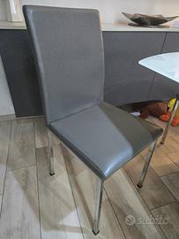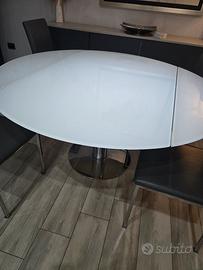 •Tavolo da pranzo in vetro temperato bianco con piede cromato argento