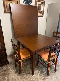Tavolo + 4 sedie in legno apribile. 1 metro per 1 metro aprendolo diventa il doppio.