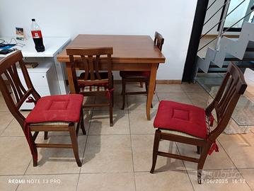 TAVOLO (DIMENSIONI 100X100) E 4 SEDIE IN LEGNO