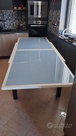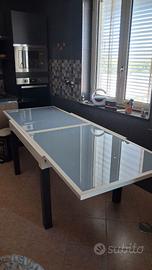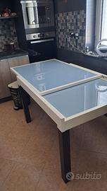 Tavolo allungabile legno e vetro con 4 sedie in legno molto resistente colore bianco e venghe in buone condizioni vendo per cambio cucina Misure 89×160 Aperto80×160 Contatti 328 441 8868 Prezzo trattabile