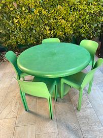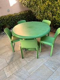 Tavolo rotondo Artemide Milano mod. Tessera Mezza Tessera anni 60 Design Vico Magistretti + 5 sedie Artemide Milano mod.Selene Design Vico Magistretti anni 60 in discrete condizioni. La spedizione eventuale e’ a carico dellacquirente.